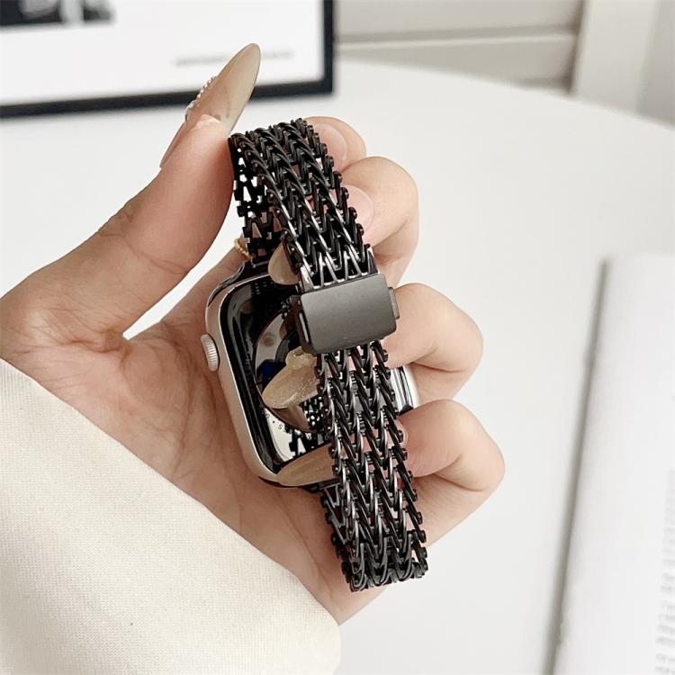 For Apple Watch 42mm / 41mm / 40mm / 38mm Slim Magnetic Snap Clasp Steel Mesh Metal Watch Band(Black)