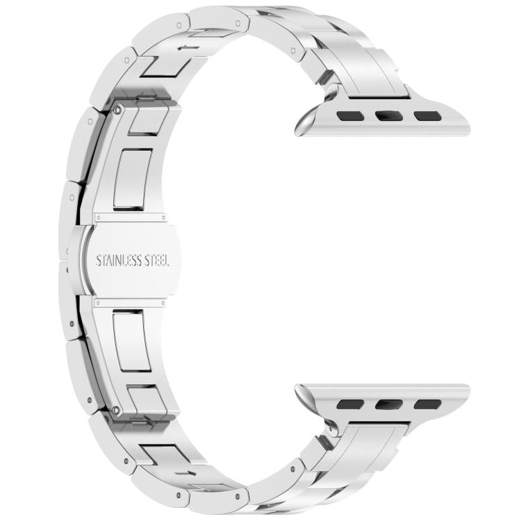 For Apple Watch 42mm / 41mm / 40mm / 38mm Slim Waist Three-bead Butterfly Buckle Titanium Alloy Watch Band(Silver)