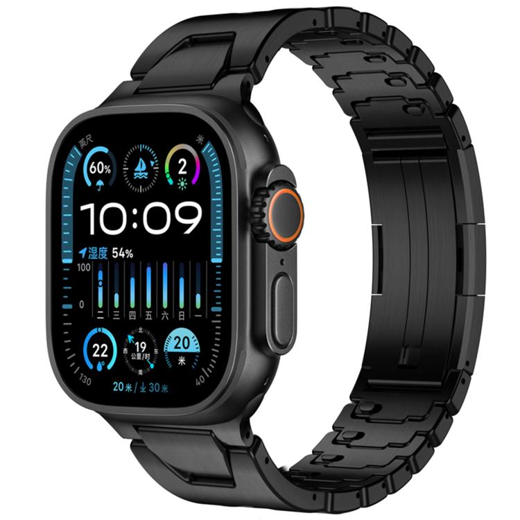 For Apple Watch 44mm / 45mm / 46mm / 49mm H-Type QuickB Release Butterfly Buckle Stainless Steel Watch Band(Black)