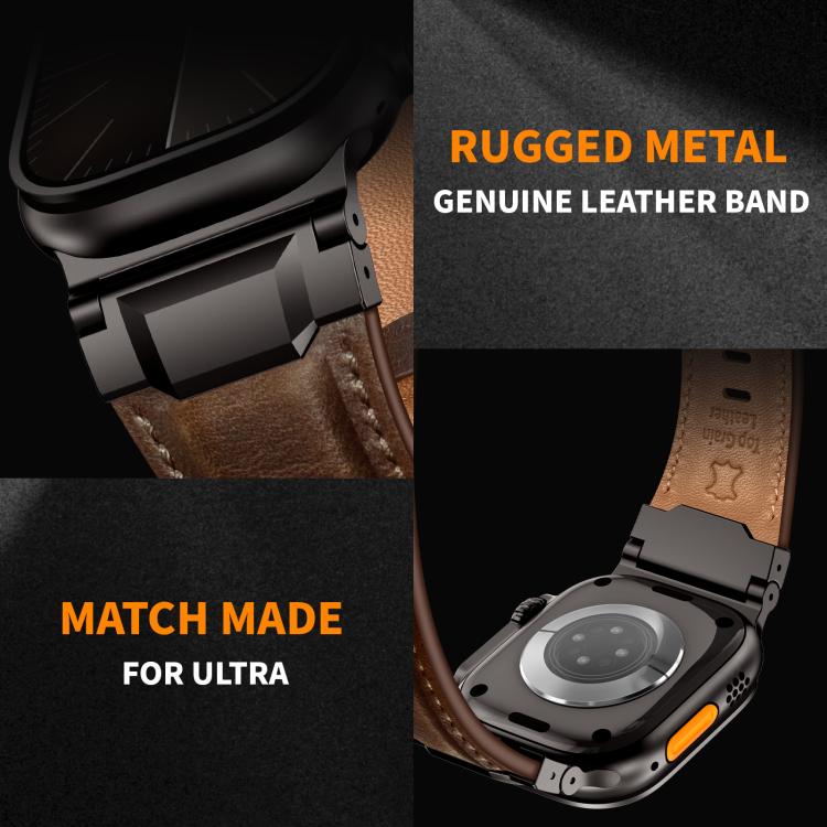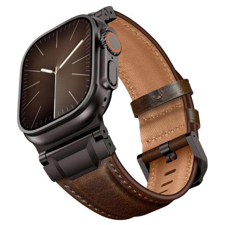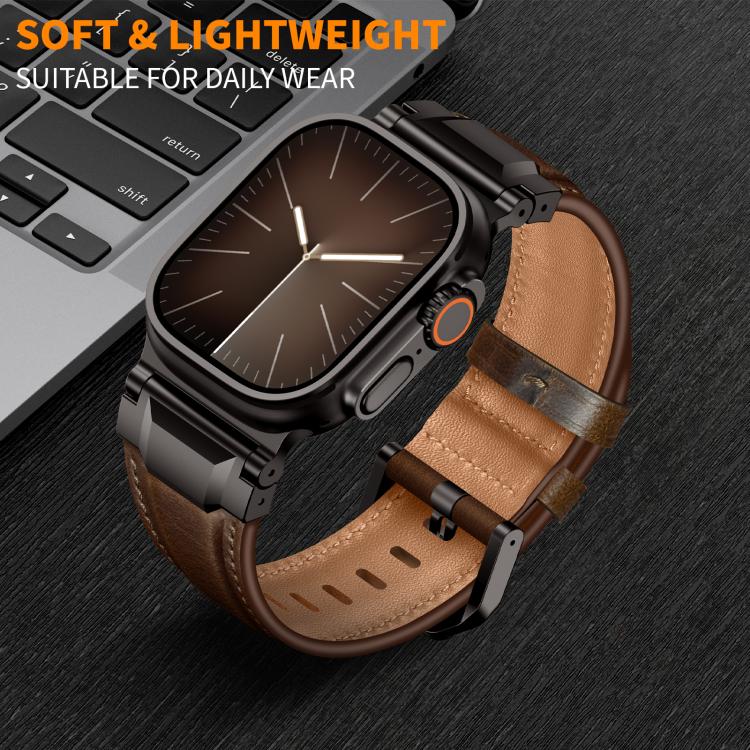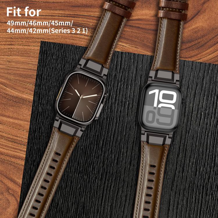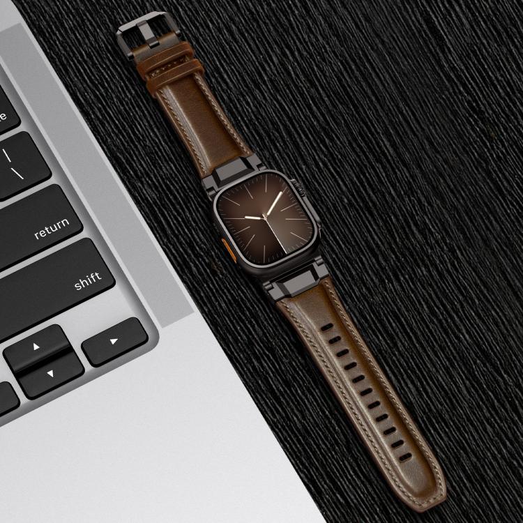 For Apple Watch 46mm / 49mm / 45mm / 44mm Armour-style Leather Watch Band(Coffee Brown Black Buckle)