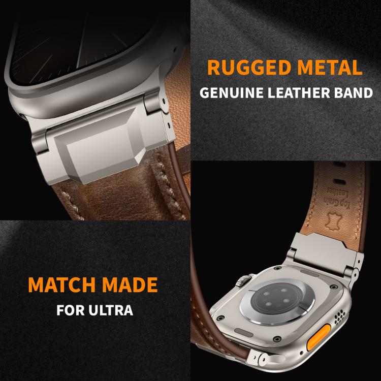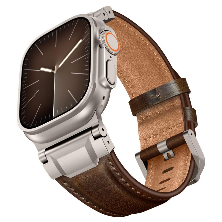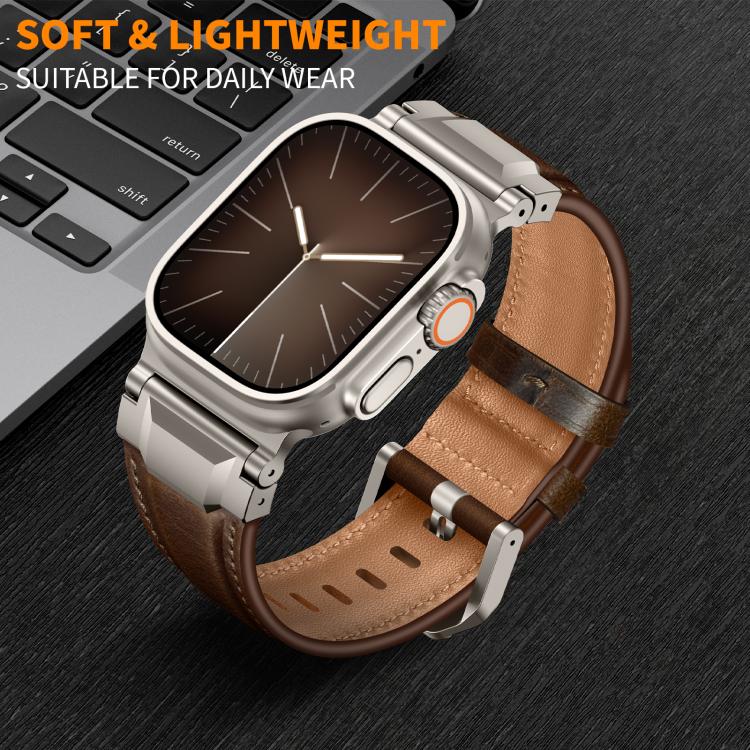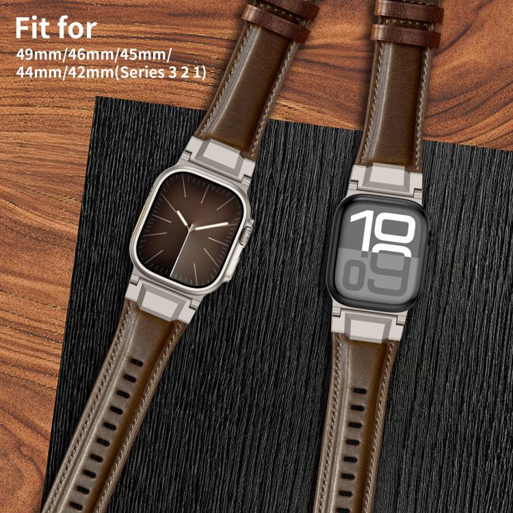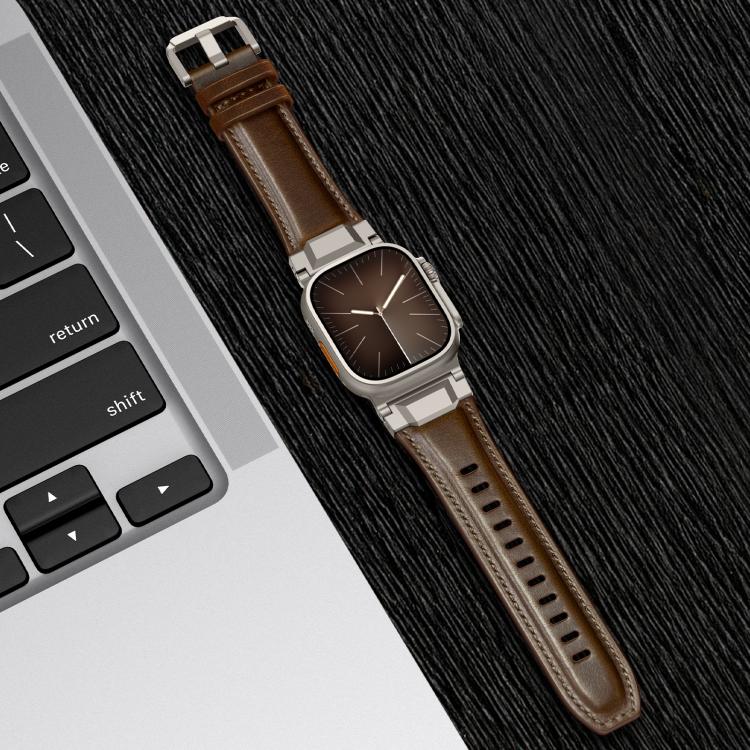 For Apple Watch 46mm / 49mm / 45mm / 44mm Armour-style Leather Watch Band(Coffee Brown Titanium Buckle)