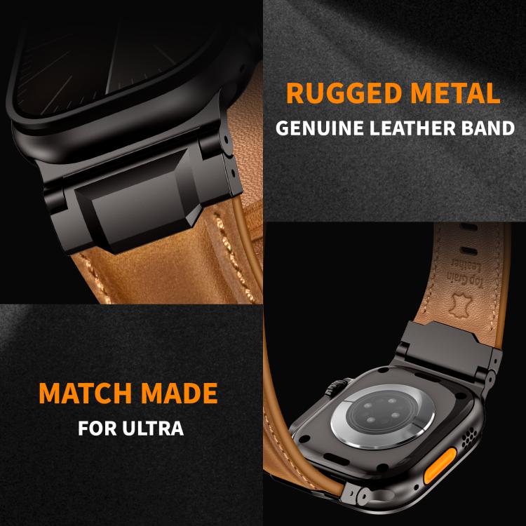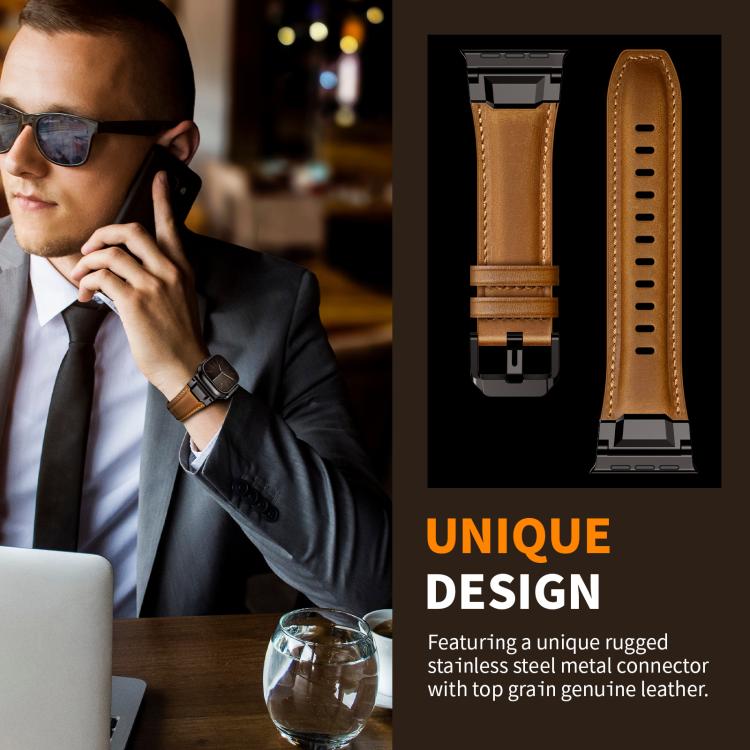For Apple Watch 46mm / 49mm / 45mm / 44mm Armour-style Leather Watch Band(Dark Red Brown Crazy Horse Leather Black Buckle)