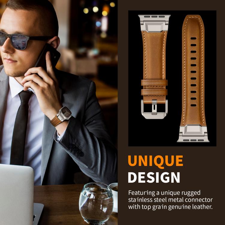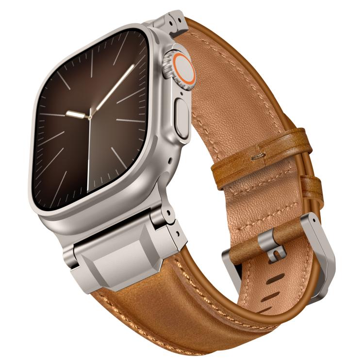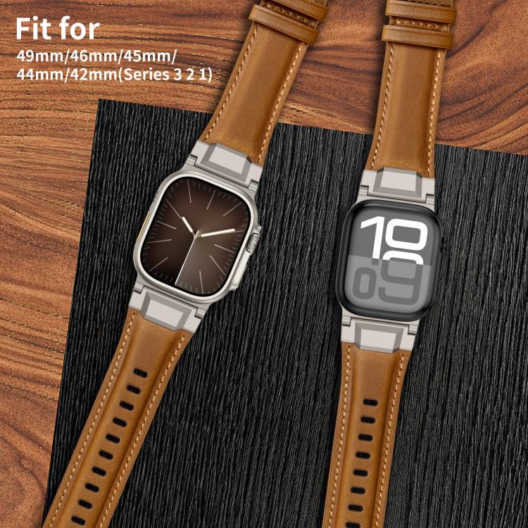 For Apple Watch 46mm / 49mm / 45mm / 44mm Armour-style Leather Watch Band(Dark Red Brown Crazy Horse Leather Titanium Buckle)