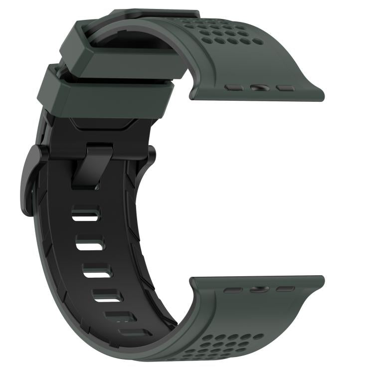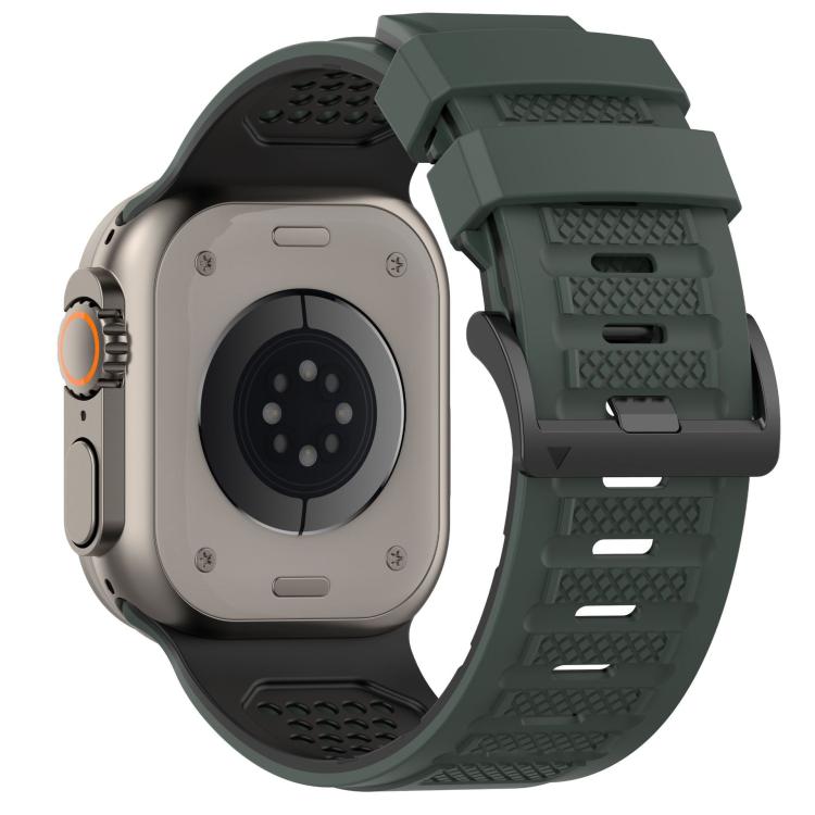 For Apple Watch 46mm / 49mm / 45mm / 44mm Check Design Breathable Silicone Watch Band(Army Green Black)