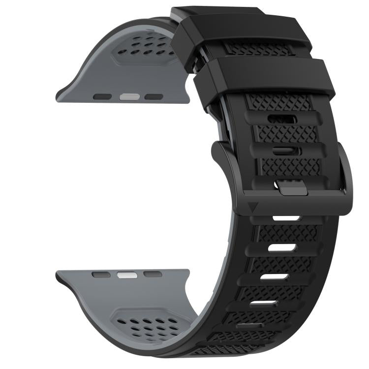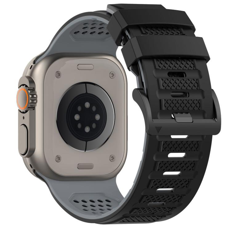 For Apple Watch 46mm / 49mm / 45mm / 44mm Check Design Breathable Silicone Watch Band(Black Gray)