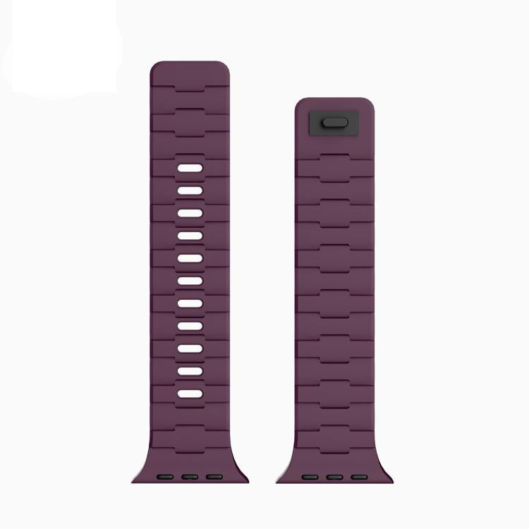 For Apple Watch 46mm / 49mm / 45mm / 44mm Horse-Embossed Single-Pin Magnetic Silicone Watch Band(Berry Purple)