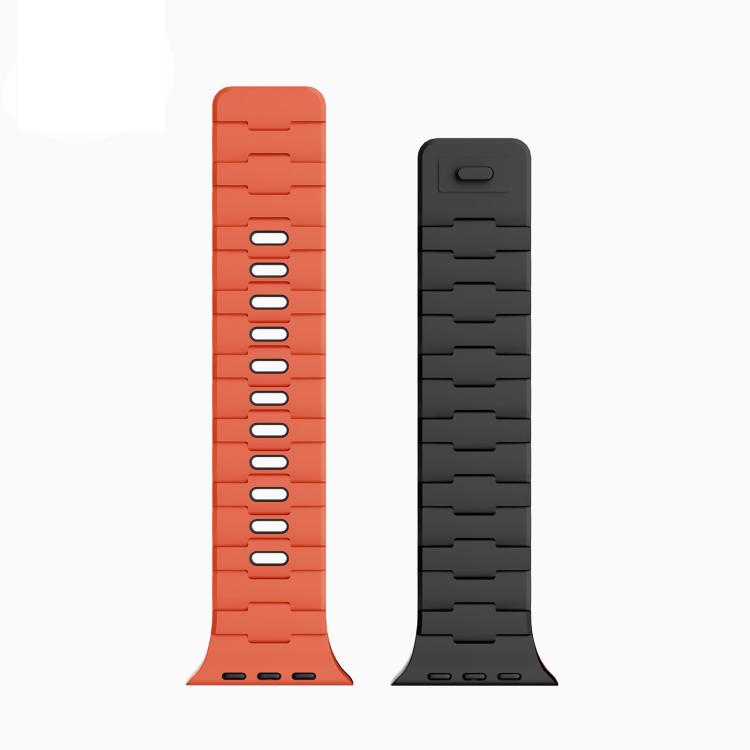 For Apple Watch 46mm / 49mm / 45mm / 44mm Horse-Embossed Single-Pin Magnetic Silicone Watch Band(Black Orange)
