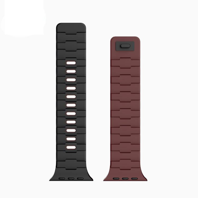 For Apple Watch 46mm / 49mm / 45mm / 44mm Horse-Embossed Single-Pin Magnetic Silicone Watch Band(Burgundy Black)