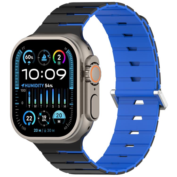 For Apple Watch 46mm / 49mm / 45mm / 44mm Melodica-Style Magnetic Dual-Color Silicone Watch Band(Black Blue)