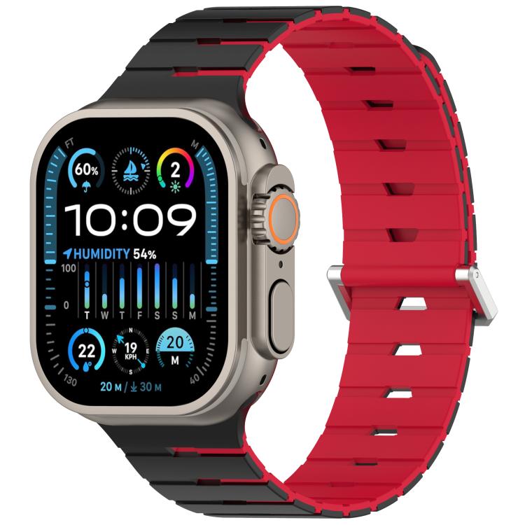 For Apple Watch 46mm / 49mm / 45mm / 44mm Melodica-Style Magnetic Dual-Color Silicone Watch Band(Black Red)