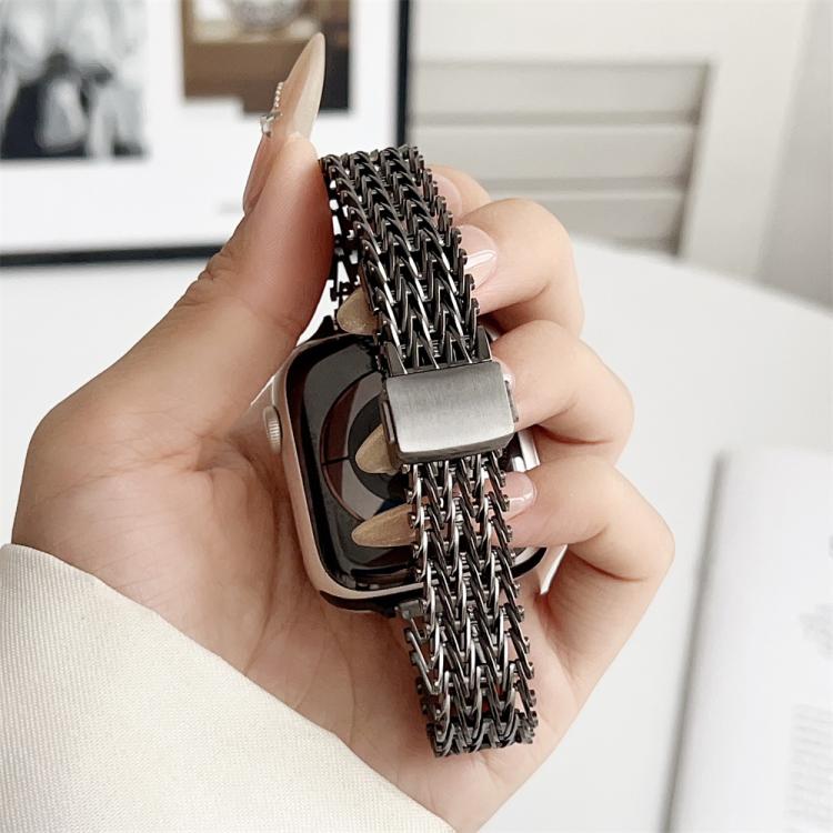 For Apple Watch 46mm / 49mm / 45mm / 44mm Slim Magnetic Snap Clasp Steel Mesh Metal Watch Band(Grey)