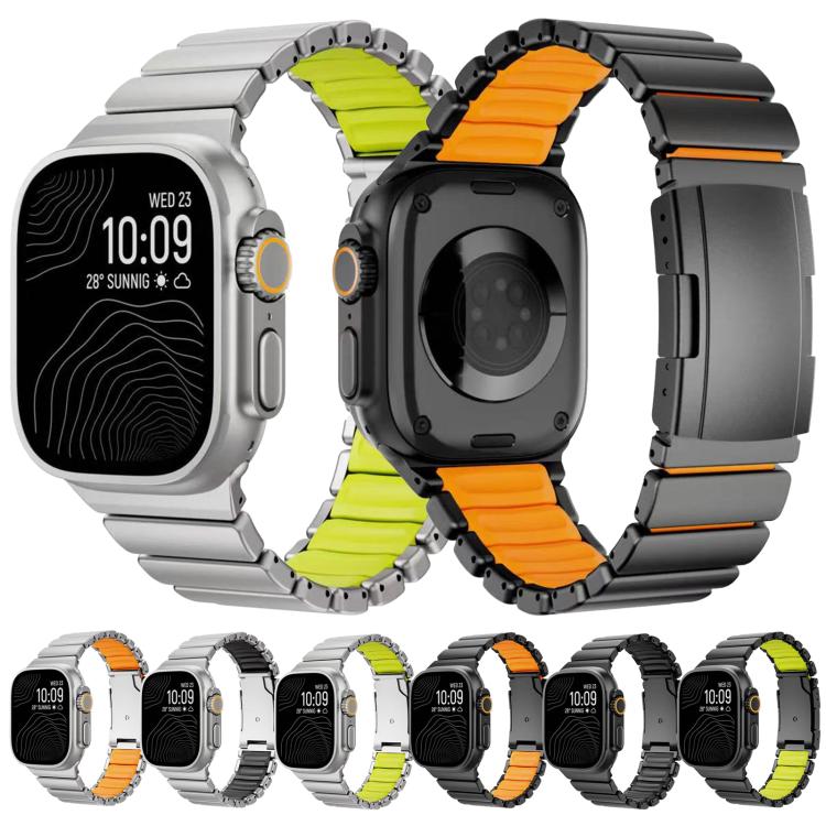 For Apple Watch 46mm/ 49mm / 45mm / 44mm Turtle Buckle Dual-Color Titanium Metal Silicone Watch Band(Black Black)
