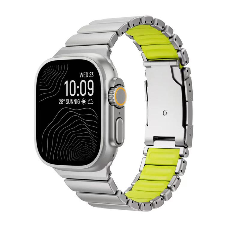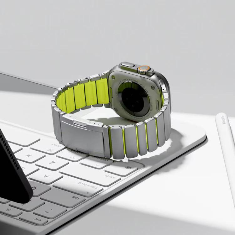 For Apple Watch 46mm/ 49mm / 45mm / 44mm Turtle Buckle Dual-Color Titanium Metal Silicone Watch Band(Titanium Green)