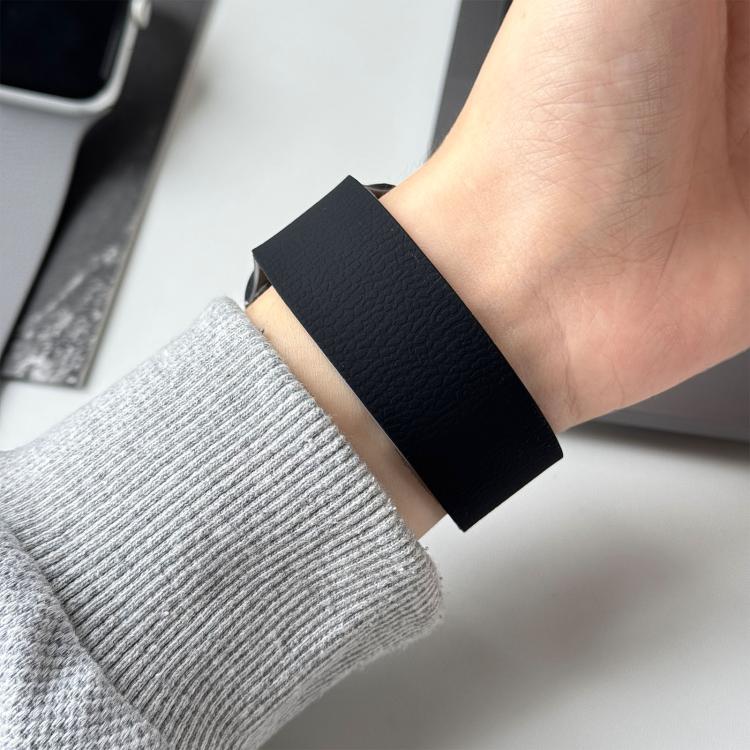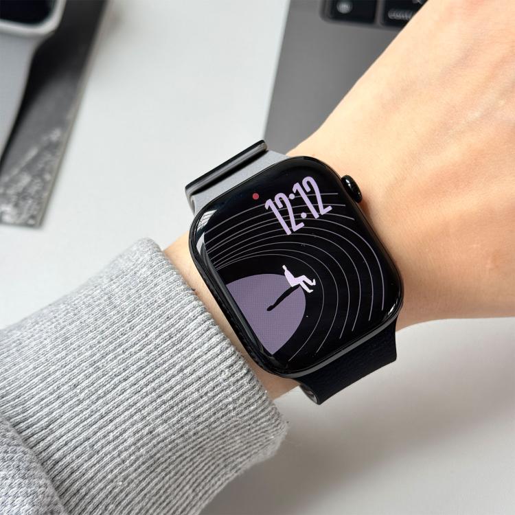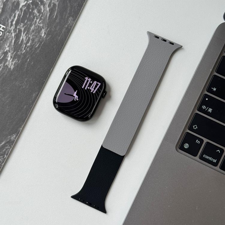 For Apple Watch 46mm / 49mm / 45mm / 44mm Two-tone Lychee-textured Magnetic Silicone Watch Band(Black Grey)