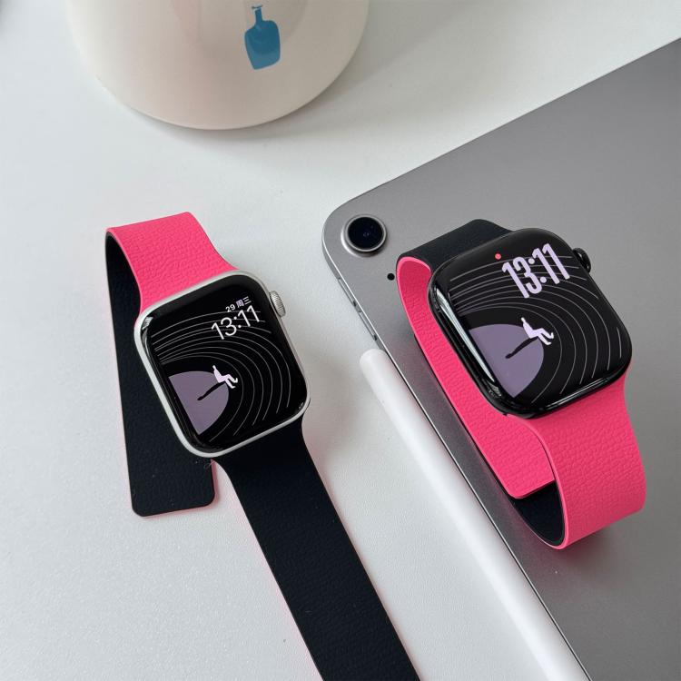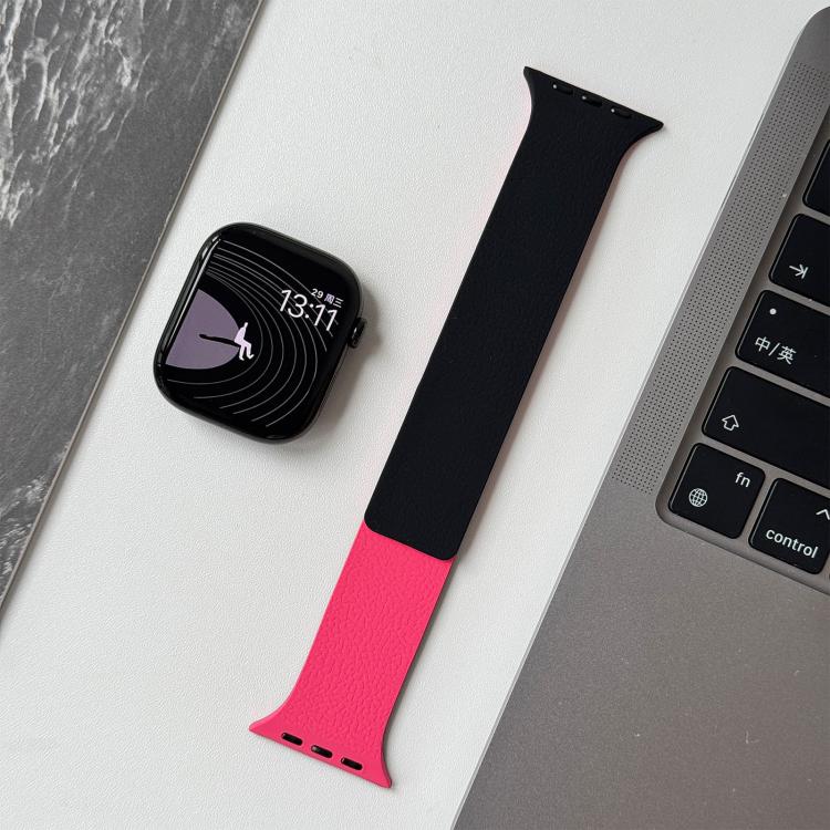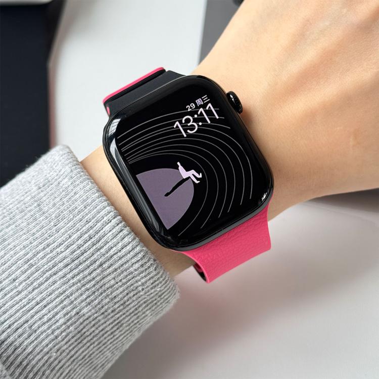 For Apple Watch 46mm / 49mm / 45mm / 44mm Two-tone Lychee-textured Magnetic Silicone Watch Band(Black Peony)
