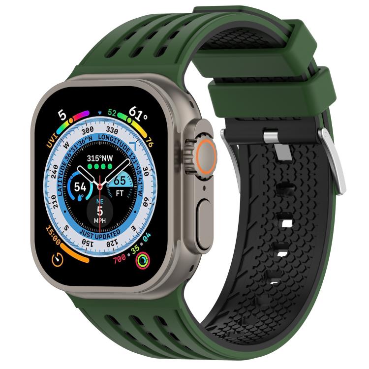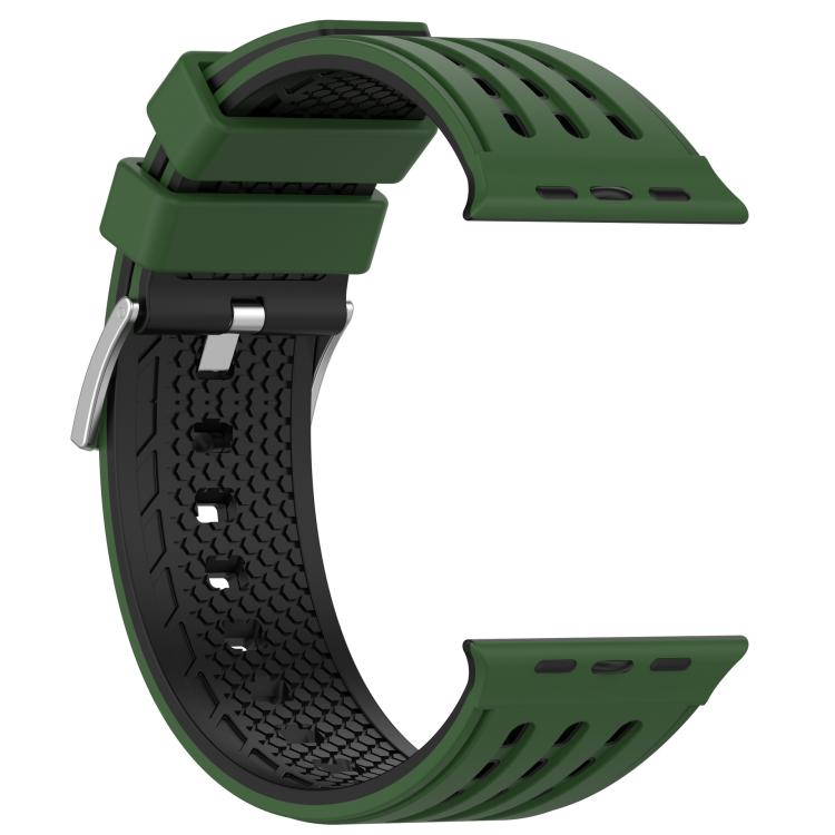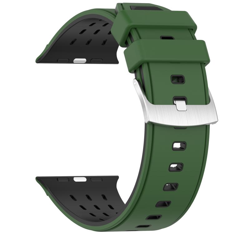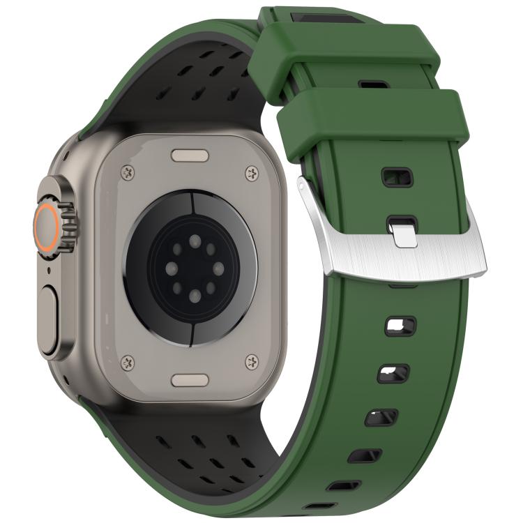For Apple Watch 46mm/ 49mm / 45mm / 44mm Vertical Holes Dual-Color Breathable Silicone Watch Band(Army Green Black)