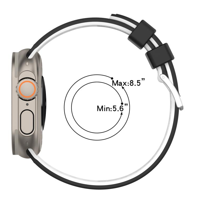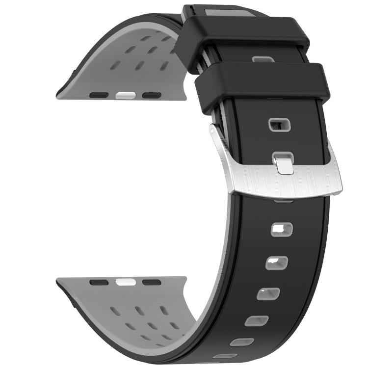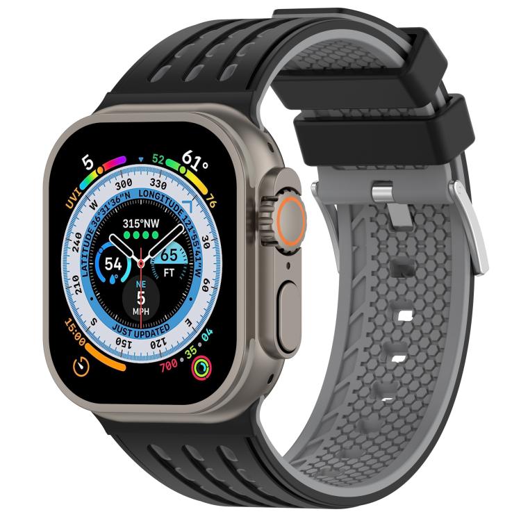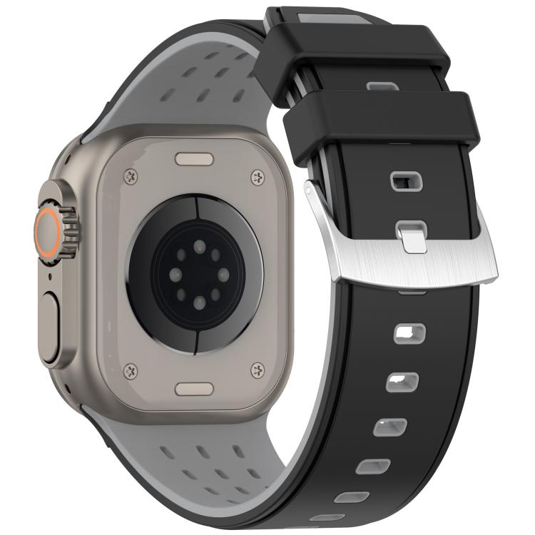 For Apple Watch 46mm/ 49mm / 45mm / 44mm Vertical Holes Dual-Color Breathable Silicone Watch Band(Black Gray)