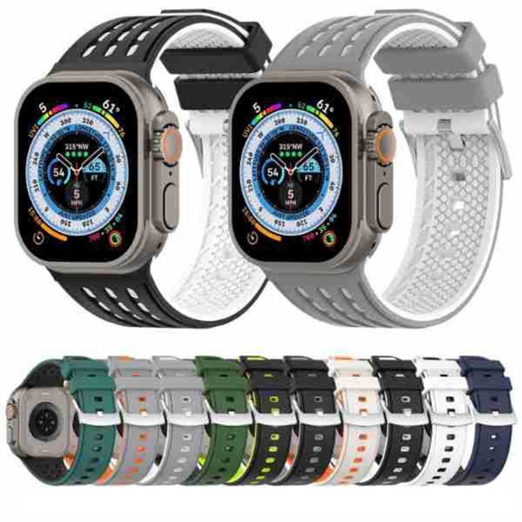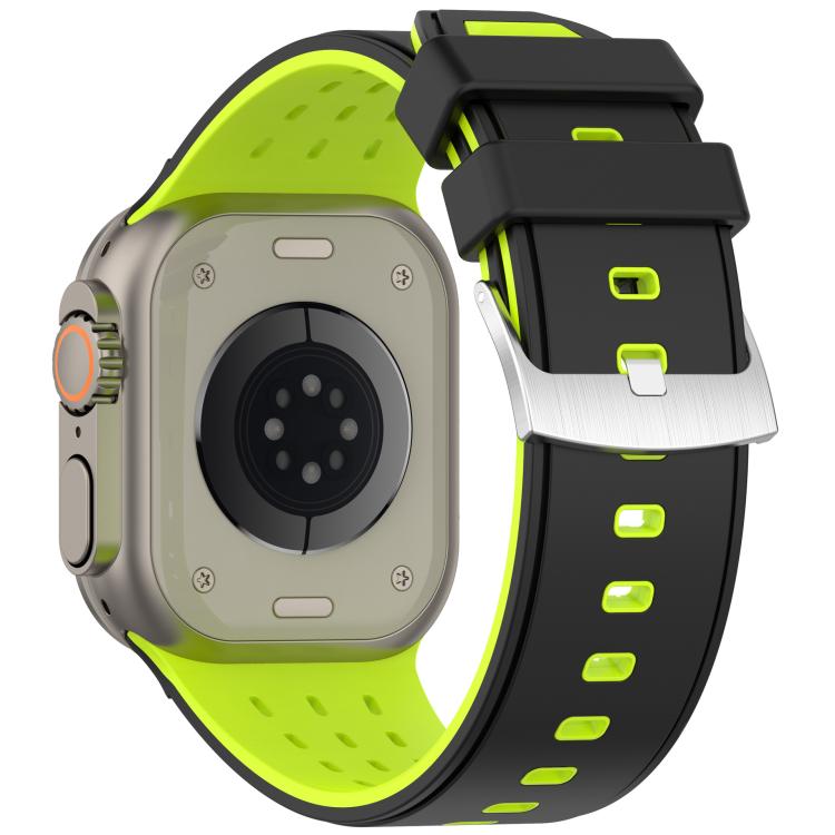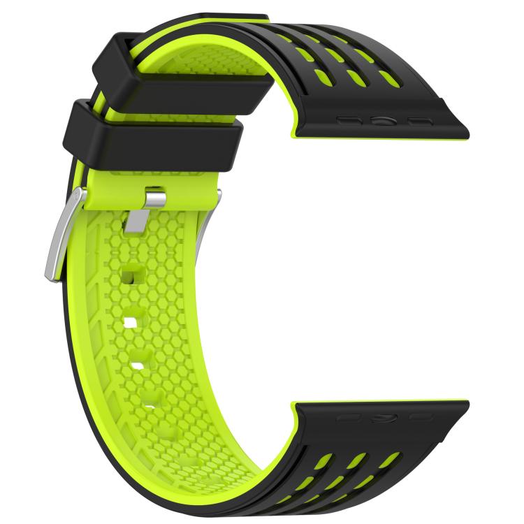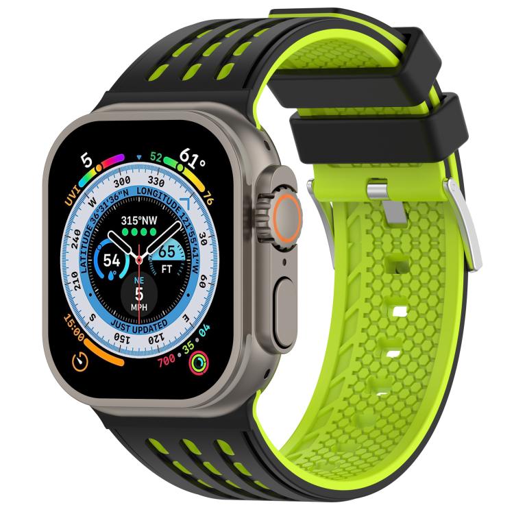 For Apple Watch 46mm/ 49mm / 45mm / 44mm Vertical Holes Dual-Color Breathable Silicone Watch Band(Black Green)