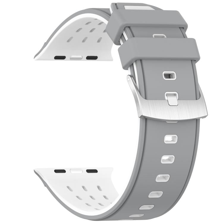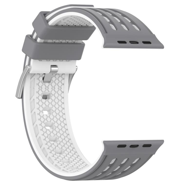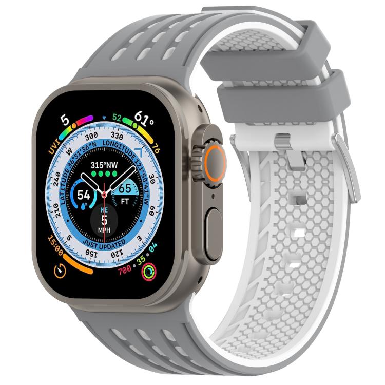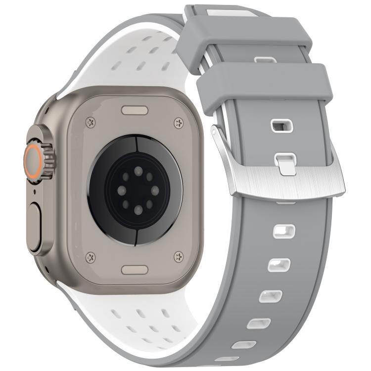 For Apple Watch 46mm/ 49mm / 45mm / 44mm Vertical Holes Dual-Color Breathable Silicone Watch Band(Gray White)