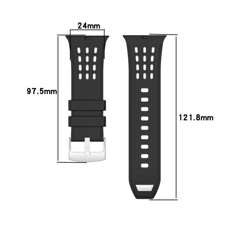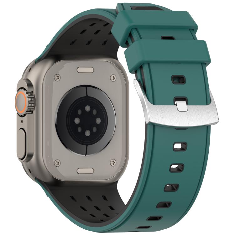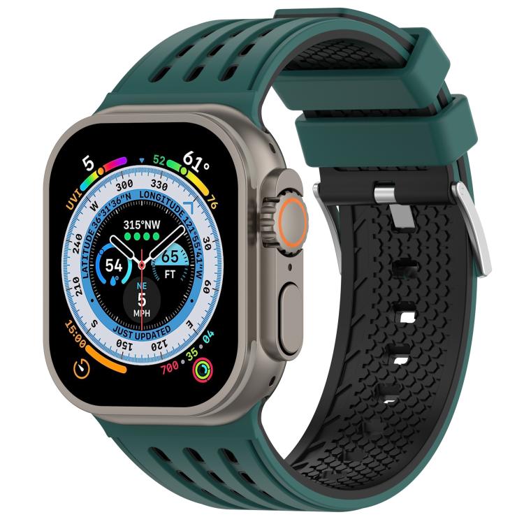 For Apple Watch 46mm/ 49mm / 45mm / 44mm Vertical Holes Dual-Color Breathable Silicone Watch Band(Green Pine Needles)