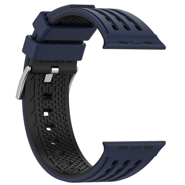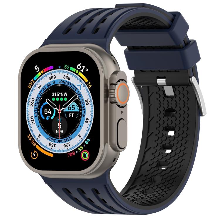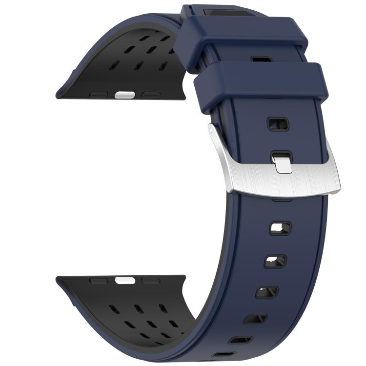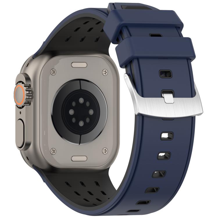 For Apple Watch 46mm/ 49mm / 45mm / 44mm Vertical Holes Dual-Color Breathable Silicone Watch Band(Midnight Blue Black)