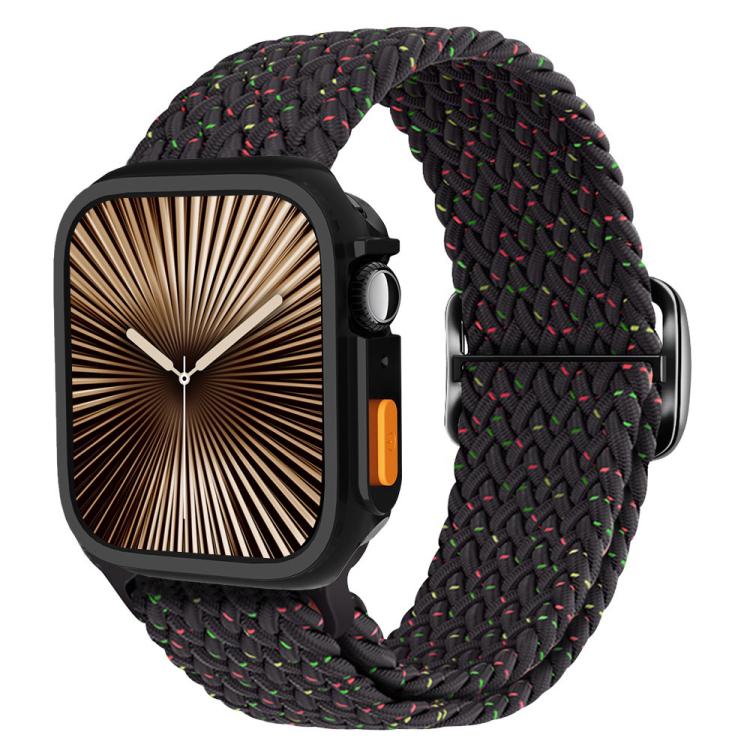 For Apple Watch Series 10 / 11 42mm Ladder Buckle Loop Nylon Watch Band with TPU Case(Starlight Black)