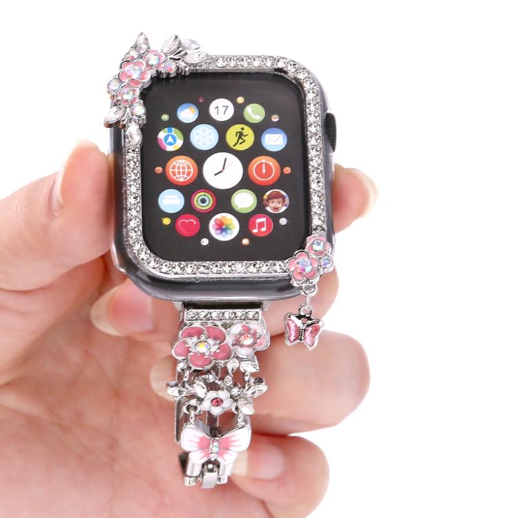 For Apple Watch Series 10 / 11 46mm Tassel Flower Single-Diamond Hollow Watch Shell Band Kit(Rose Gold)