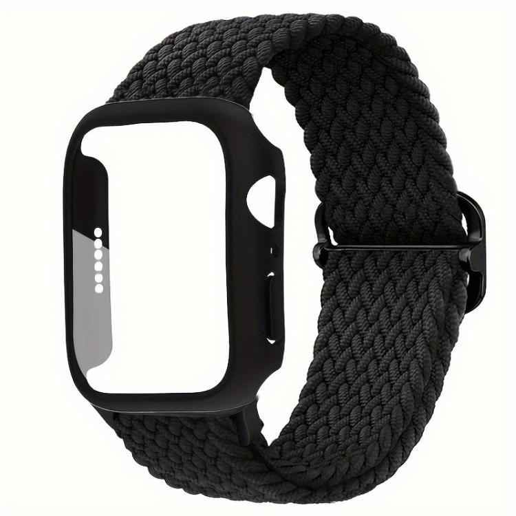 For Apple Watch Series 45mm Ladder Buckle Loop Nylon Watch Band with Film Frosted PC Cover(Black)