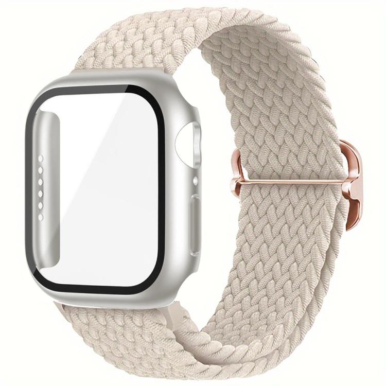For Apple Watch Series 45mm Ladder Buckle Loop Nylon Watch Band with Film Frosted PC Cover(Starlight)