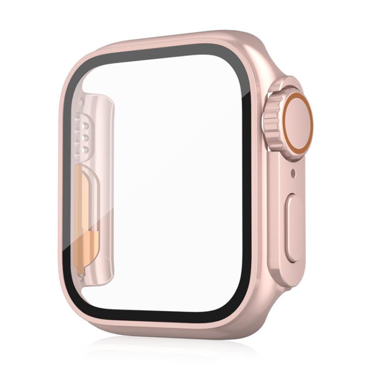 For Apple Watch Series 6 / 5 / 4 / SE 40mm xDfind Change to Ultra 49mm Tempered Glass Film Integrated PC Watch Cover(Rose Gold+Orange)