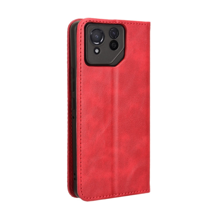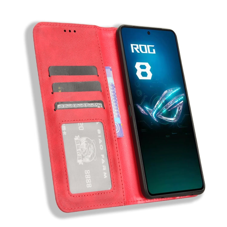 For ASUS ROG Phone 8 Pro Magnetic Buckle Retro Texture Leather Phone Case(Red)