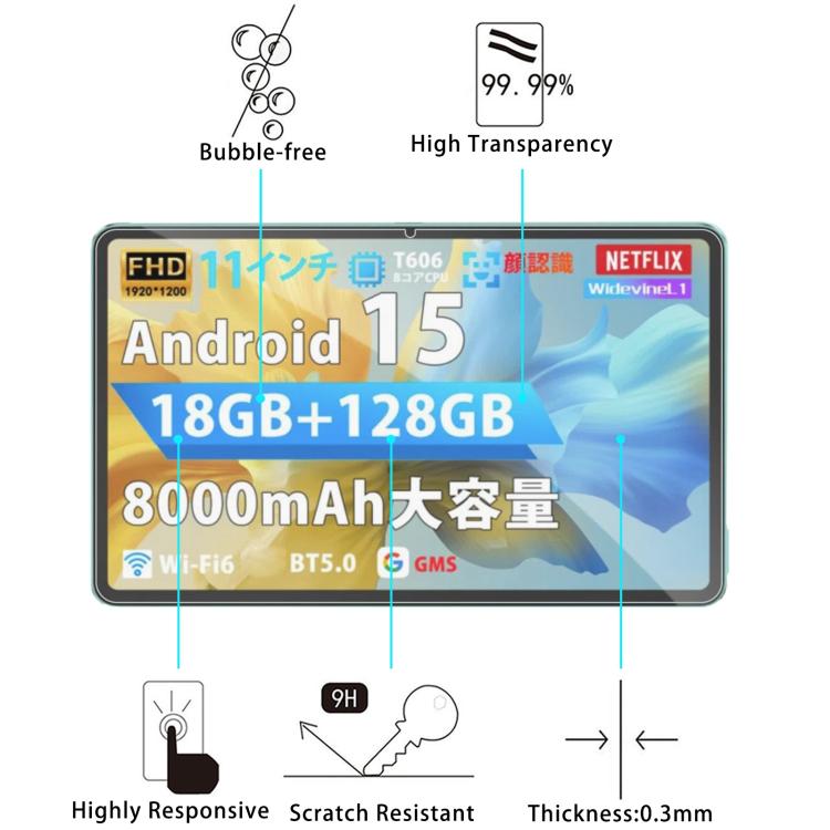 For Azeyou M17 T11 11 inch 2pcs 9H 0.3mm Explosion-proof Tempered Glass Film
