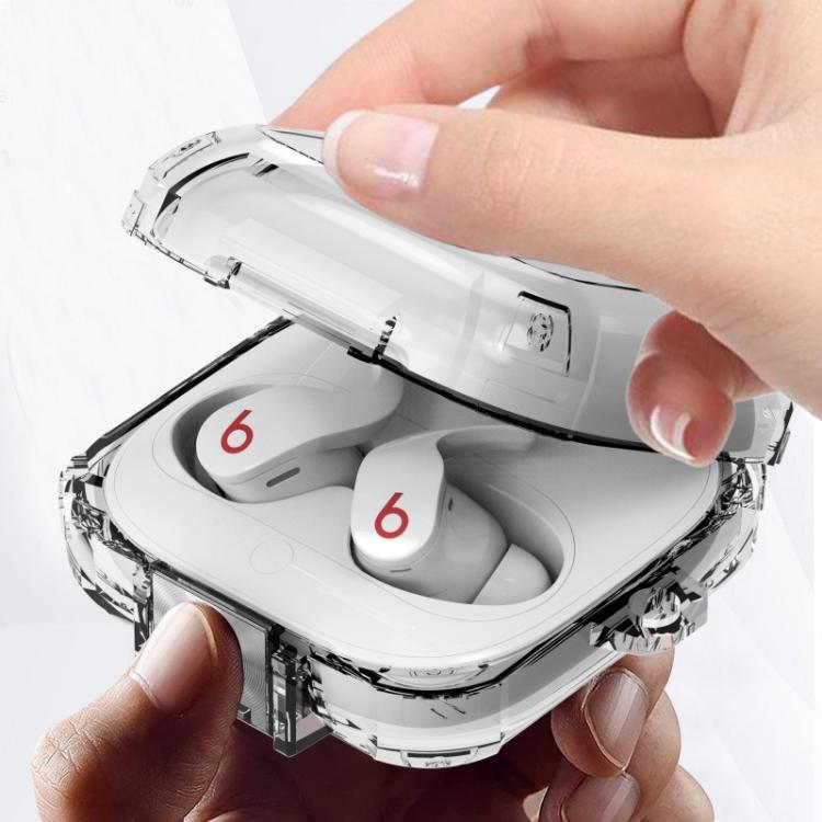 For Beats Fit Pro Transparent Metal Snap Lock Shockproof Earphone Cover with Finger Loop(Transparent)