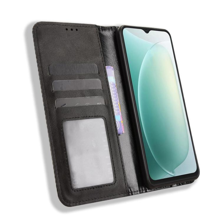 For Blackview Wave 9C Magnetic Buckle Retro Texture Leather Phone Case(Black)
