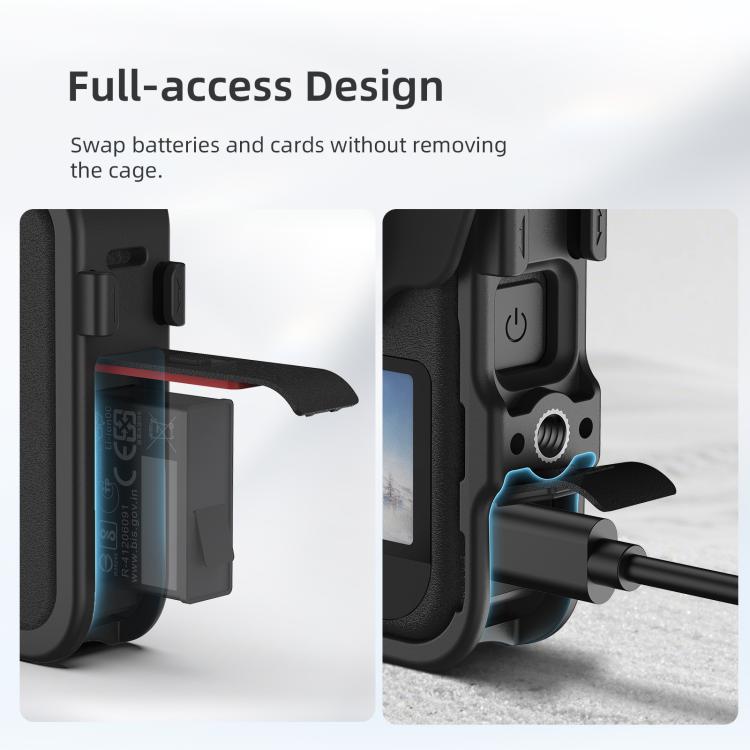 5. Full access battery compartment allows direct battery replacement and MicroSD card insertion/removal without disassembling the cage.