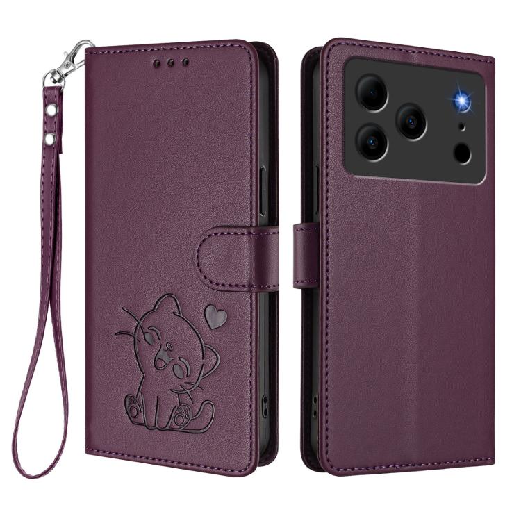 For Doogee Note 56 / Note 56 Pro Embossed Heart Cat Leather Phone Case with Hand Strap(Dark Purple)