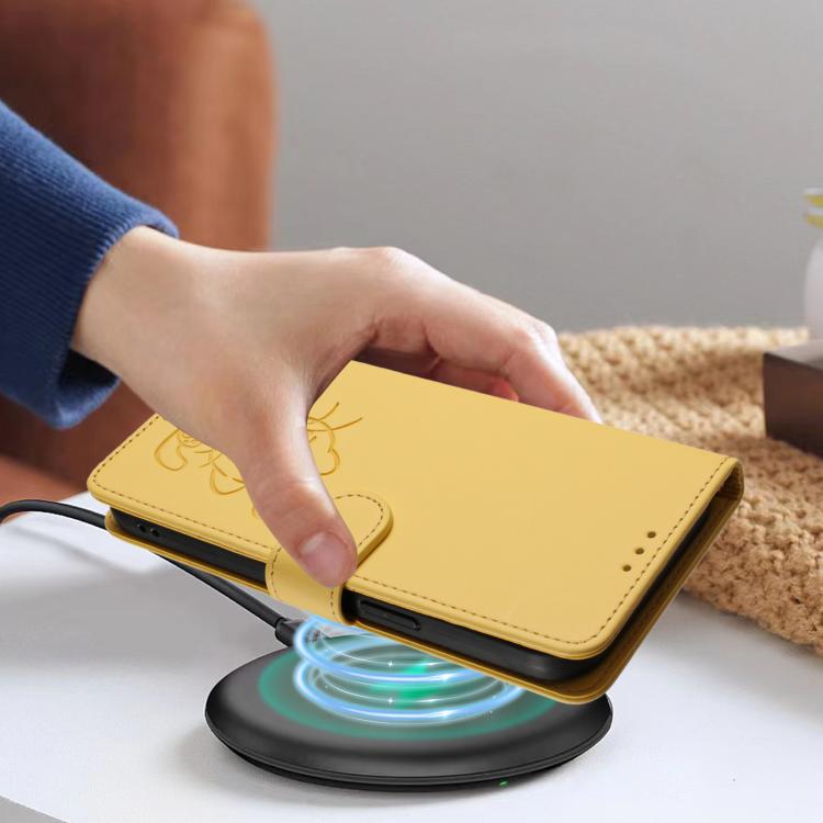 For Doogee Note 56 / Note 56 Pro Embossed Heart Cat Leather Phone Case with Hand Strap(Yellow)