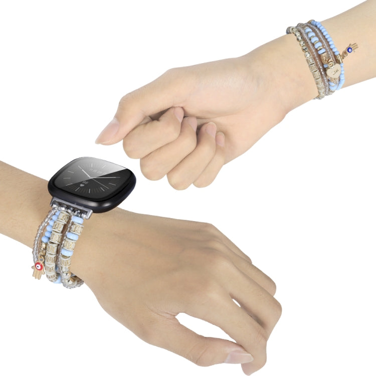 For Fitbit Versa 3 / Sense Palm Bead Chain Watch Band(Blue)