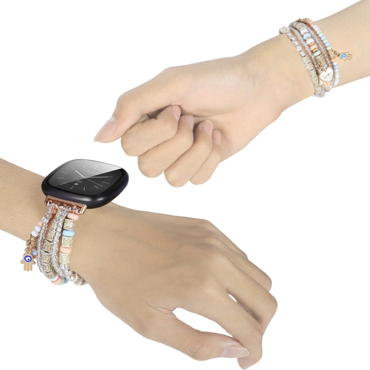 For Fitbit Versa 3 / Sense Palm Bead Chain Watch Band(Pink)