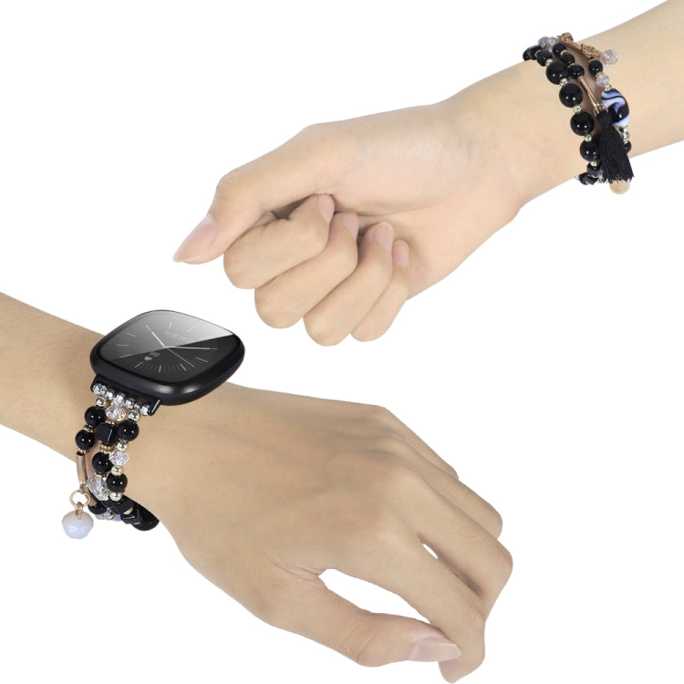 For Fitbit Versa 3 / Sense Round Bead Chain Watch Band(Black)