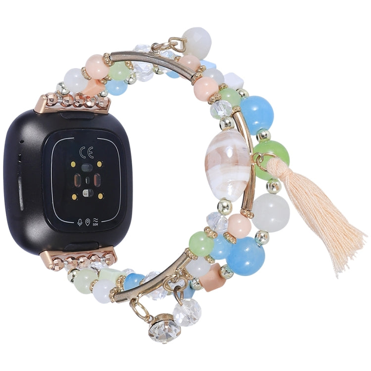 For Fitbit Versa 3 / Sense Round Bead Chain Watch Band(Pink)