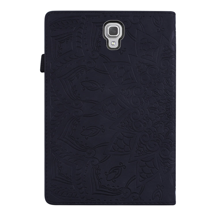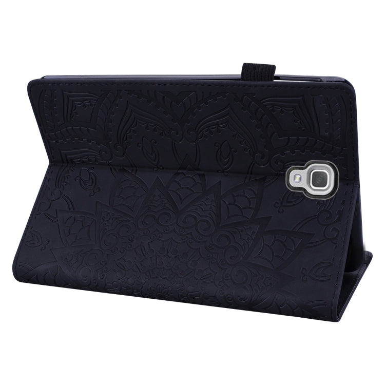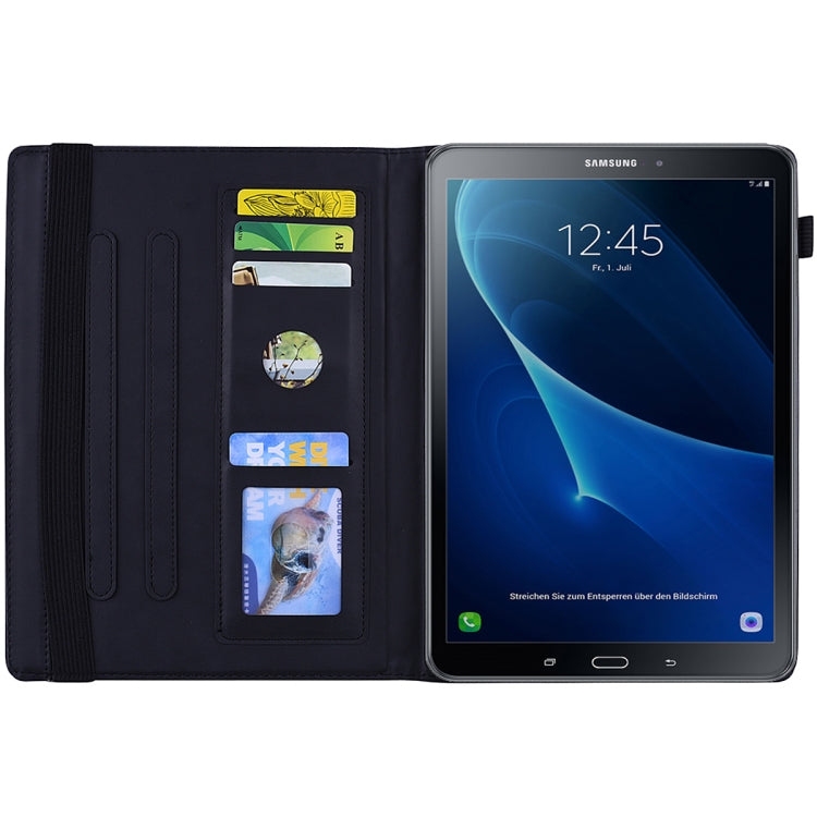 For Galaxy Tab A 10.5 T590 / T595 Calf Pattern Double Folding Design Embossed Leather Case with Holder & Card Slots & Pen Slot & Elastic Band(Black)