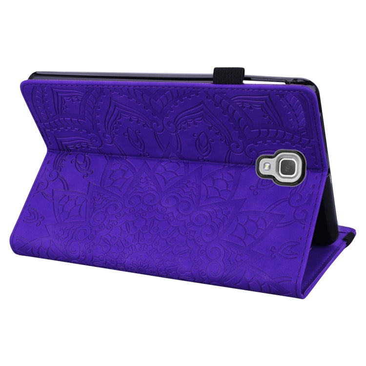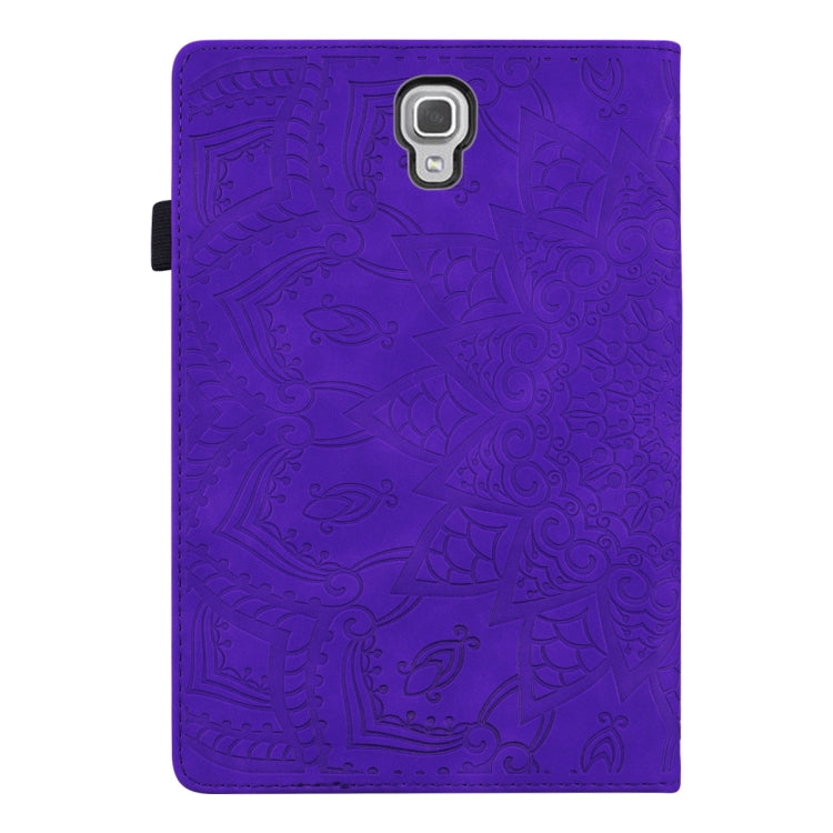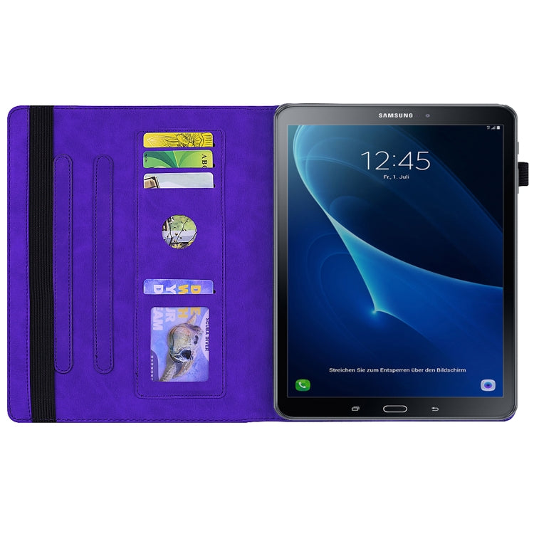 For Galaxy Tab A 10.5 T590 / T595 Calf Pattern Double Folding Design Embossed Leather Case with Holder & Card Slots & Pen Slot & Elastic Band(Purple)