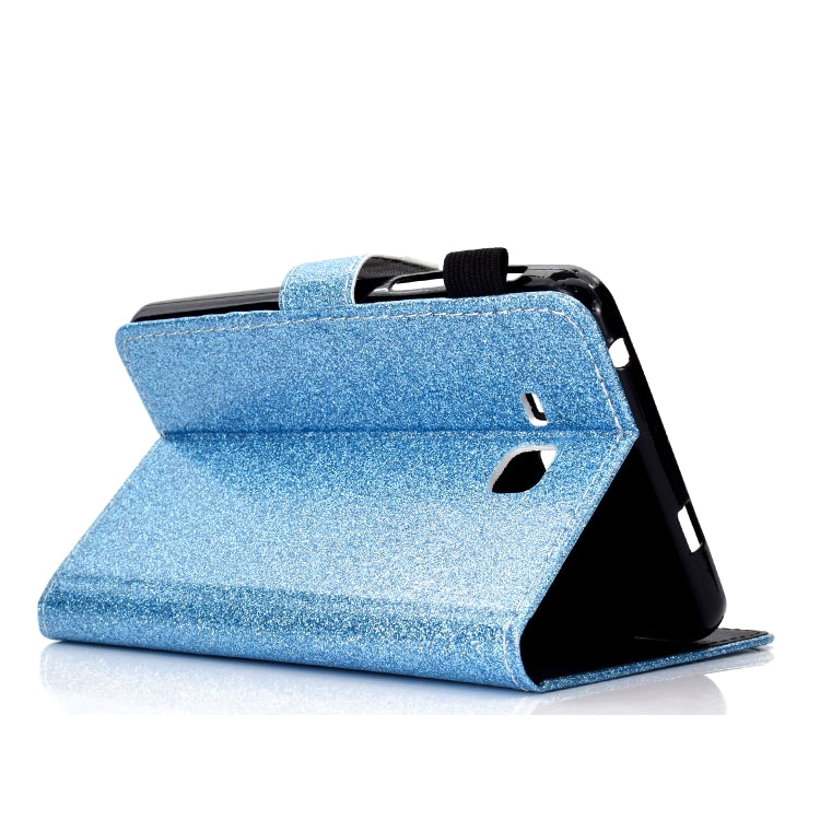 For Galaxy Tab A 7.0 (2016) T280 Varnish Glitter Powder Horizontal Flip Leather Case with Holder & Card Slot(Blue)