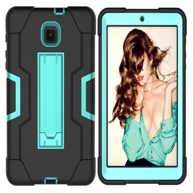 For Galaxy Tab A 8.0 (2018) T387 Contrast Color Silicone + PC Combination Case with Holder(Black + Aqua)