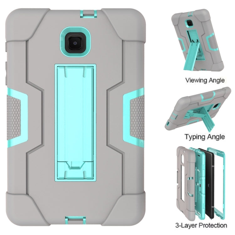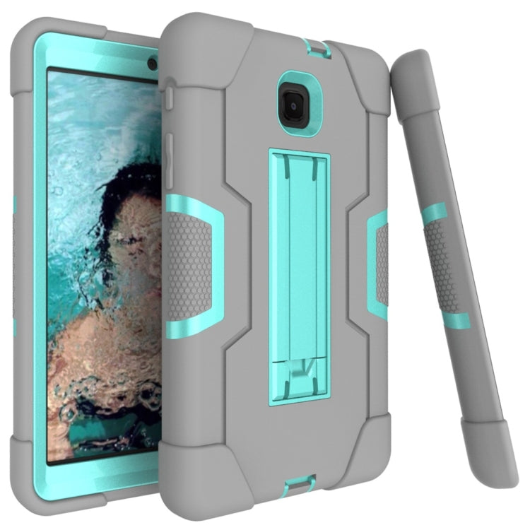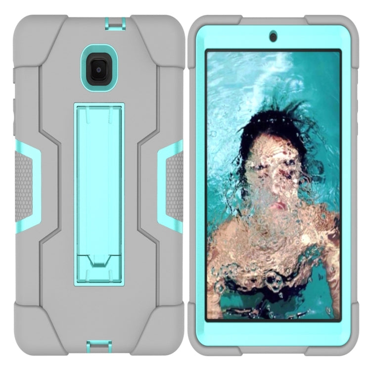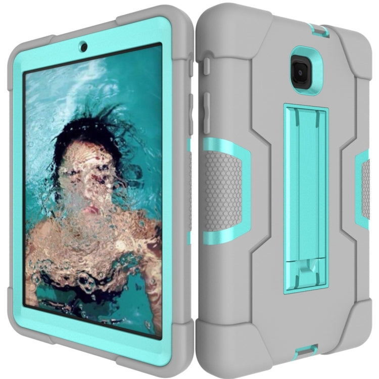 For Galaxy Tab A 8.0 (2018) T387 Contrast Color Silicone + PC Combination Case with Holder(Grey + Aqua)