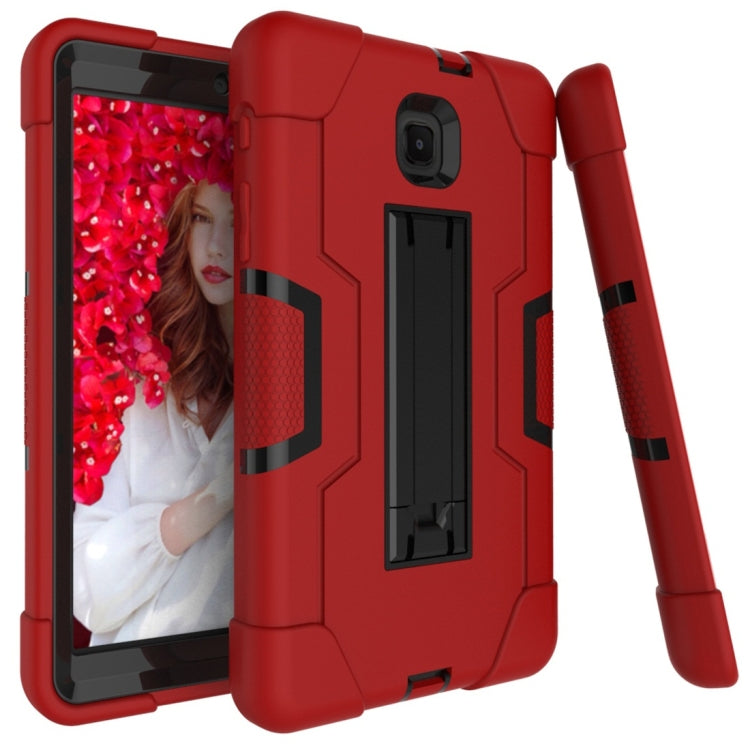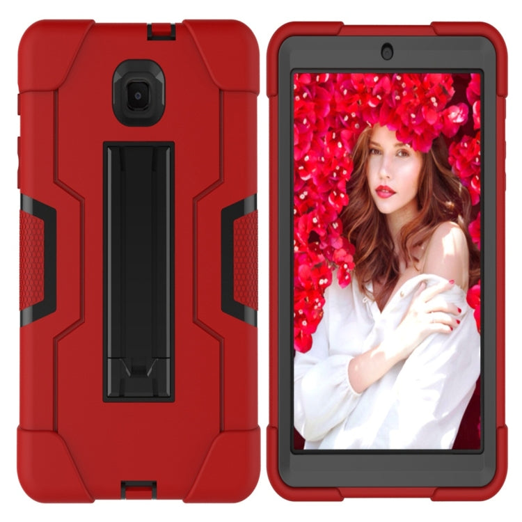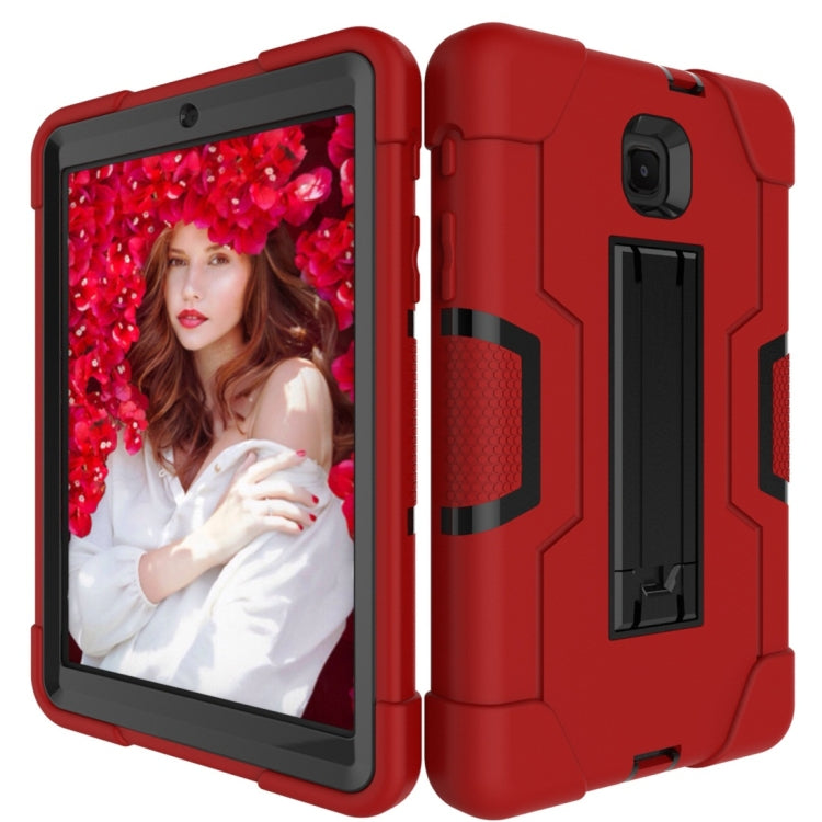 For Galaxy Tab A 8.0 (2018) T387 Contrast Color Silicone + PC Combination Case with Holder(Red + Black)