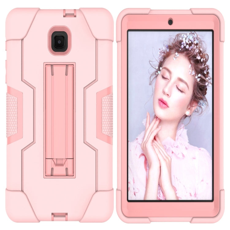 For Galaxy Tab A 8.0 (2018) T387 Contrast Color Silicone + PC Combination Case with Holder(Rose Gold)