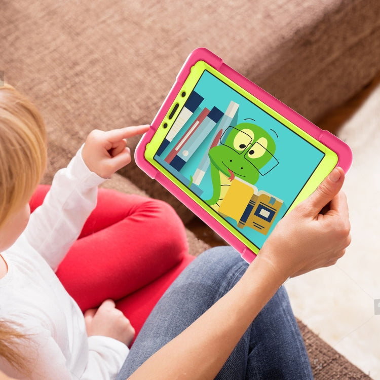 For Galaxy Tab A 8.0 (2019) T290 / T295 PC + Silicone Shockproof Combination Case with 360 Degree Rotating Holder & Handle(Rose Red+Grass Green)