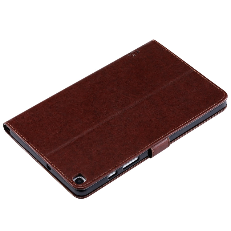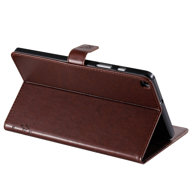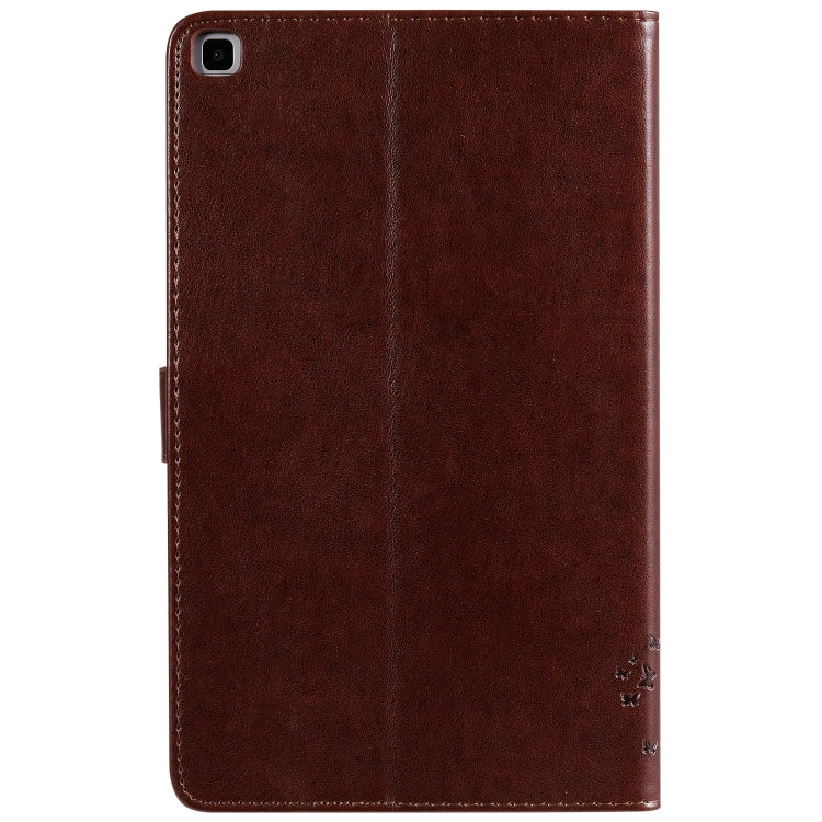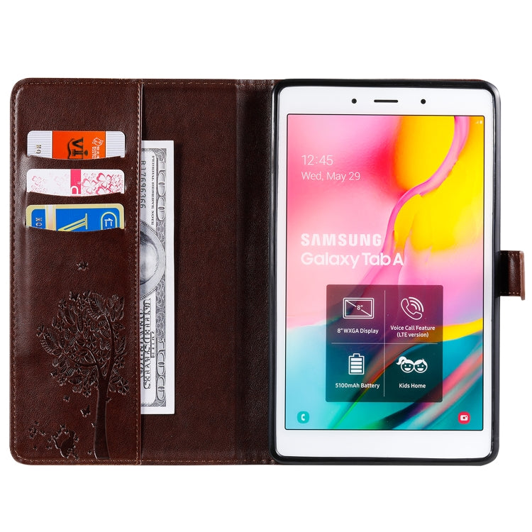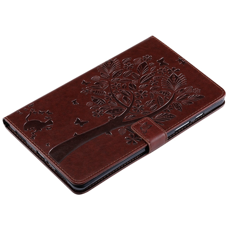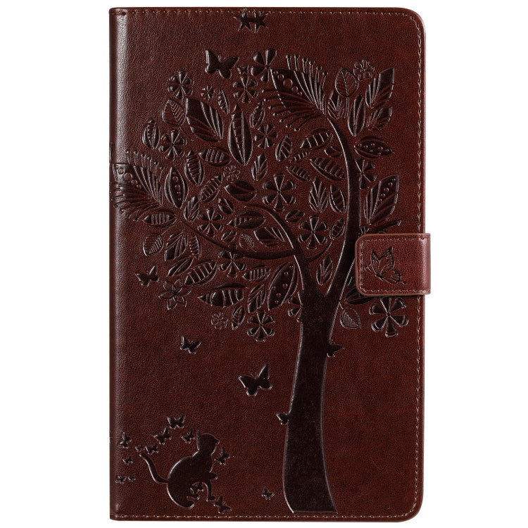 For Galaxy Tab A 8.0 (2019) T295/T290 Pressed Printing Cat and Tree Pattern Horizontal Flip Leather Case with Holder & Card Slots & Wallet(Brown)